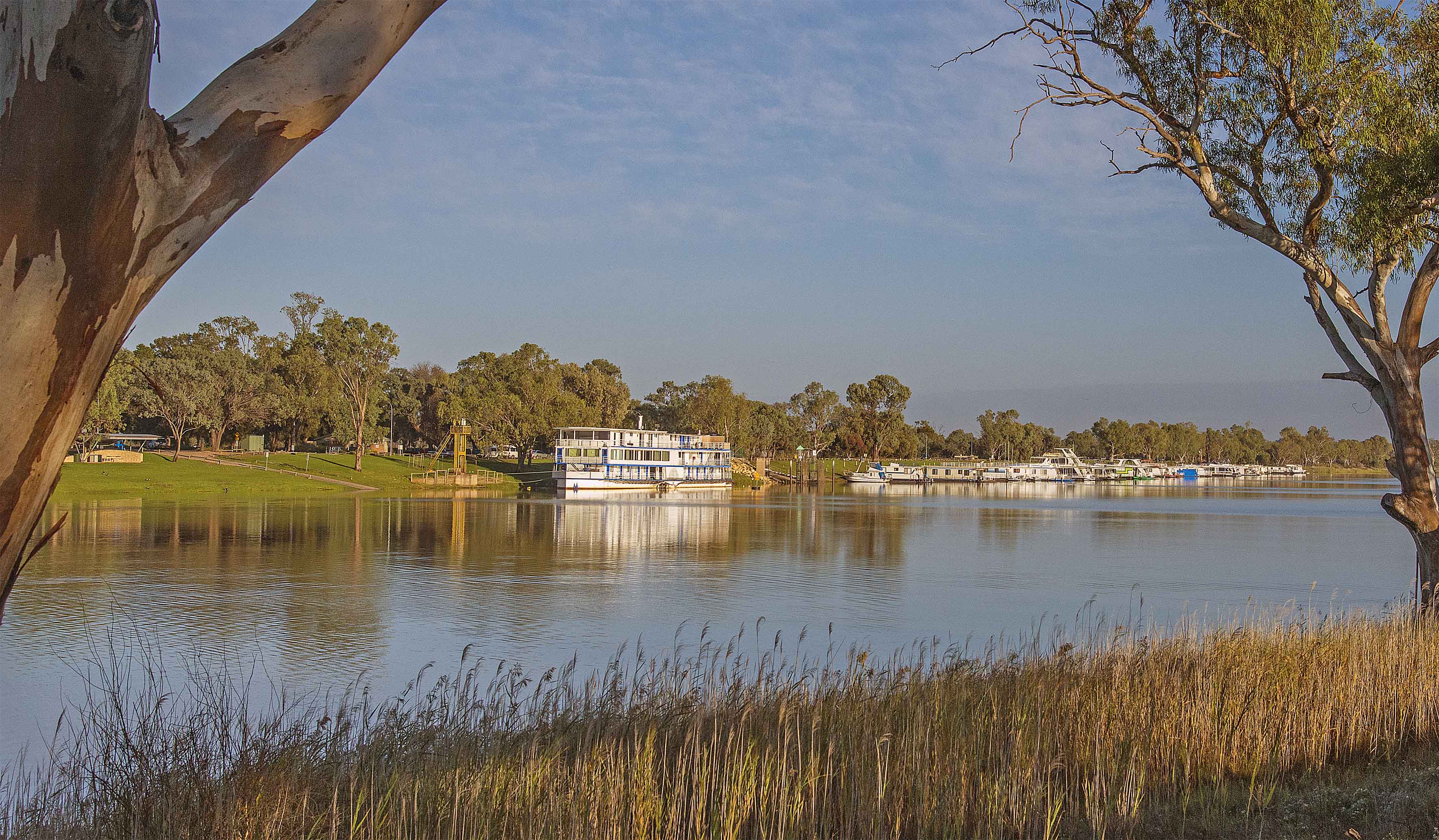 We enjoyed several activities in Waikerie, located midway between Morgan and Renmark, including this early ferry across the Murray River to take morning photos of the ochre cliffs near the town.