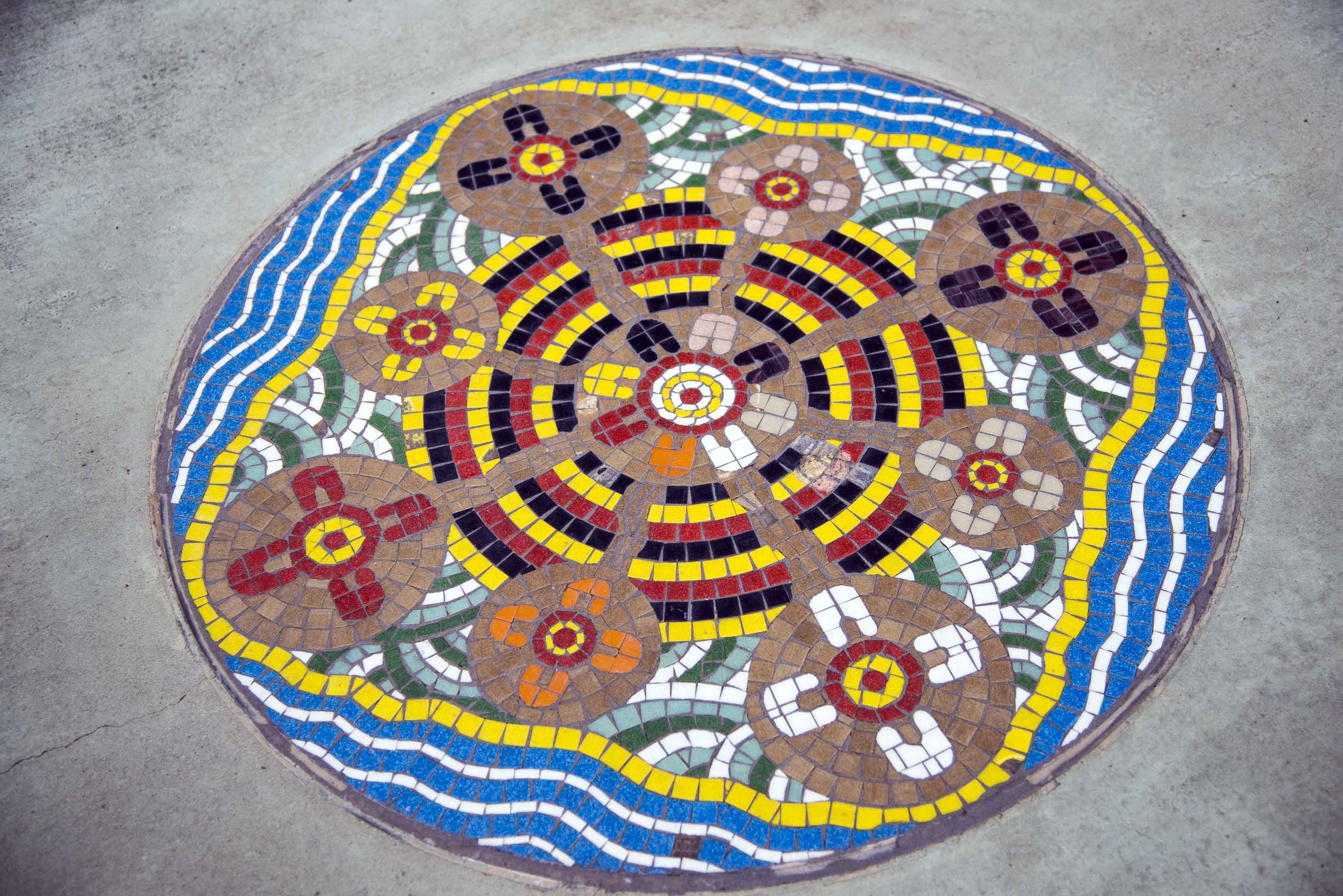 Alongside is a mosaic pathway of 21 tiles created by local artists to describe 100 years of Emerald’s history. The local Aboriginal people, the Murri, designed several mosaics about the dreamtime, before and after white settlement, and the future. We found these positive visual images very beautiful.