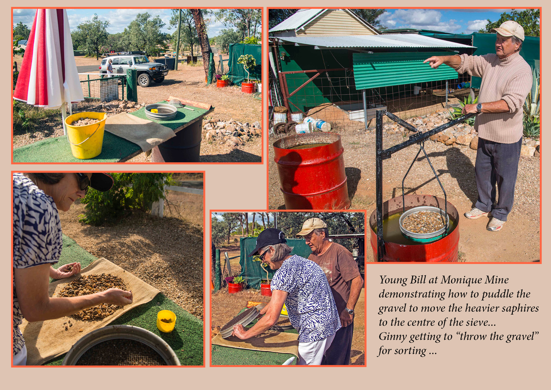 We enjoyed meeting Bill from the Monique Mine, a local bloke who likes to have a yarn and provides punters like us with a $15 bucket of gravel from the diggings alongside his house to sieve… we had great fun and learnt a lot!