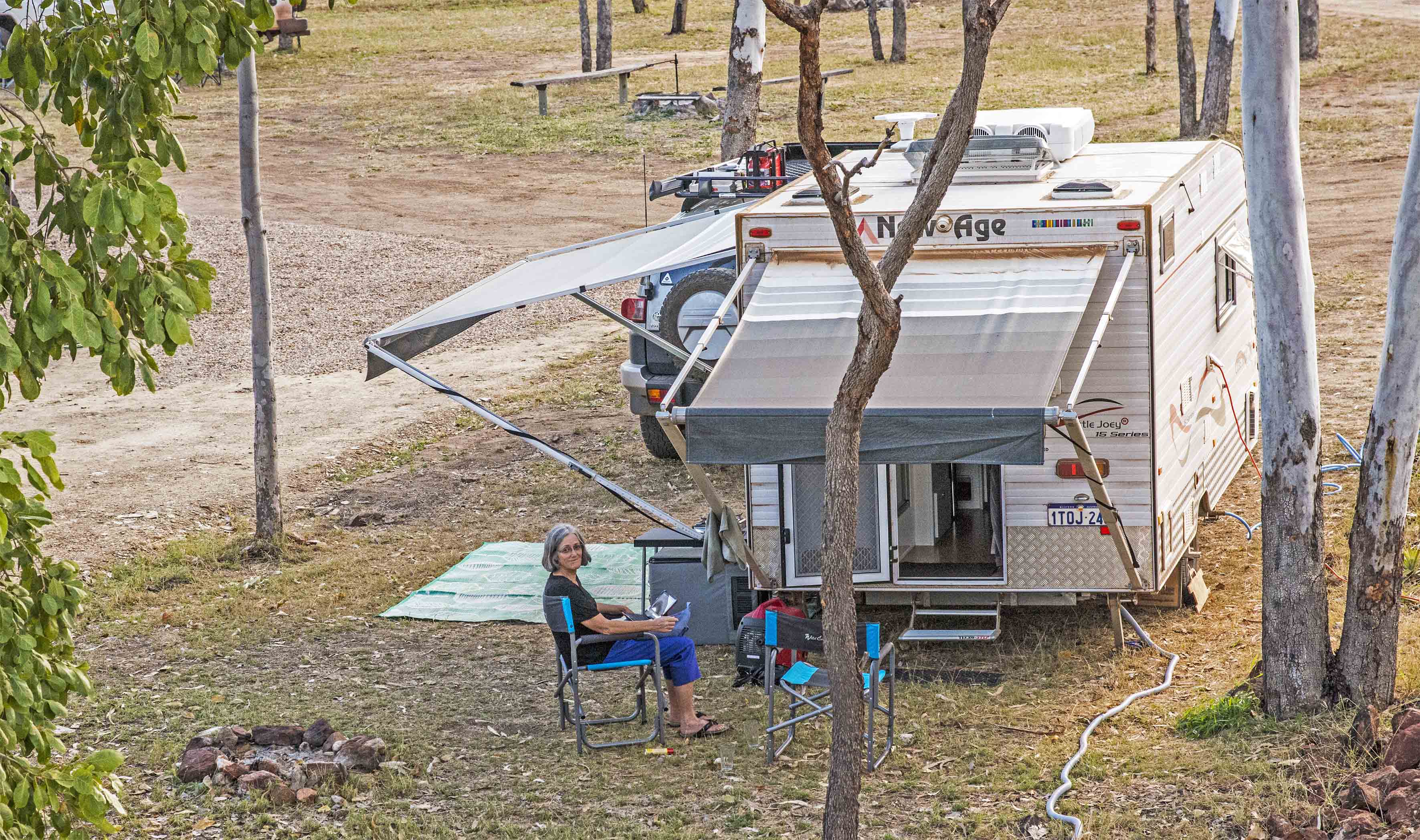 Then off on the 42 km trip out to Cobbold Gorge. The owners had warned us that there was a section of gravel road with some ‘hairy bits’ s ( two parts, totaling about 70km of dirt ). It was a slow trip with our caravan, but no problems. We lowered tyre pressures all round, car and caravan, and had a much more enjoyable gravel road experience…