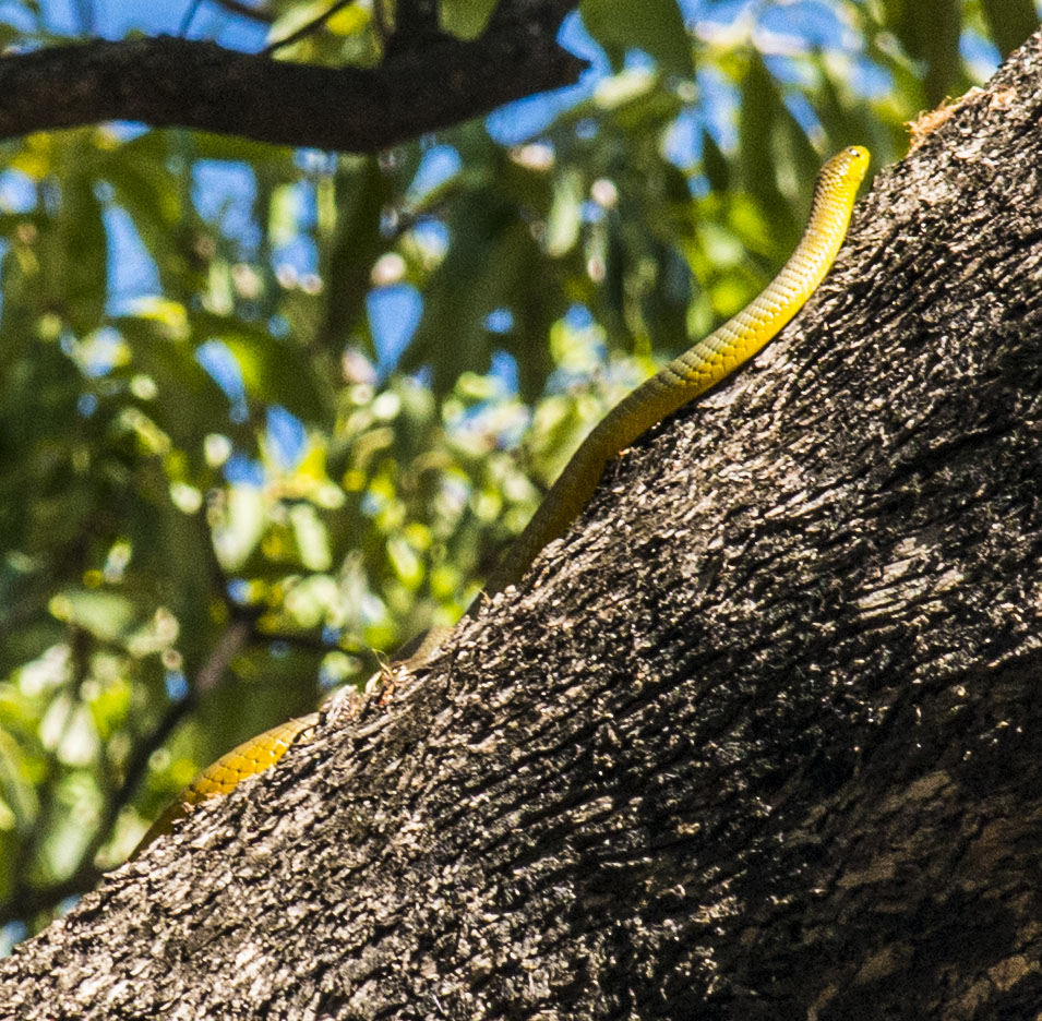 And the very pretty green tree snake making himself scarce…