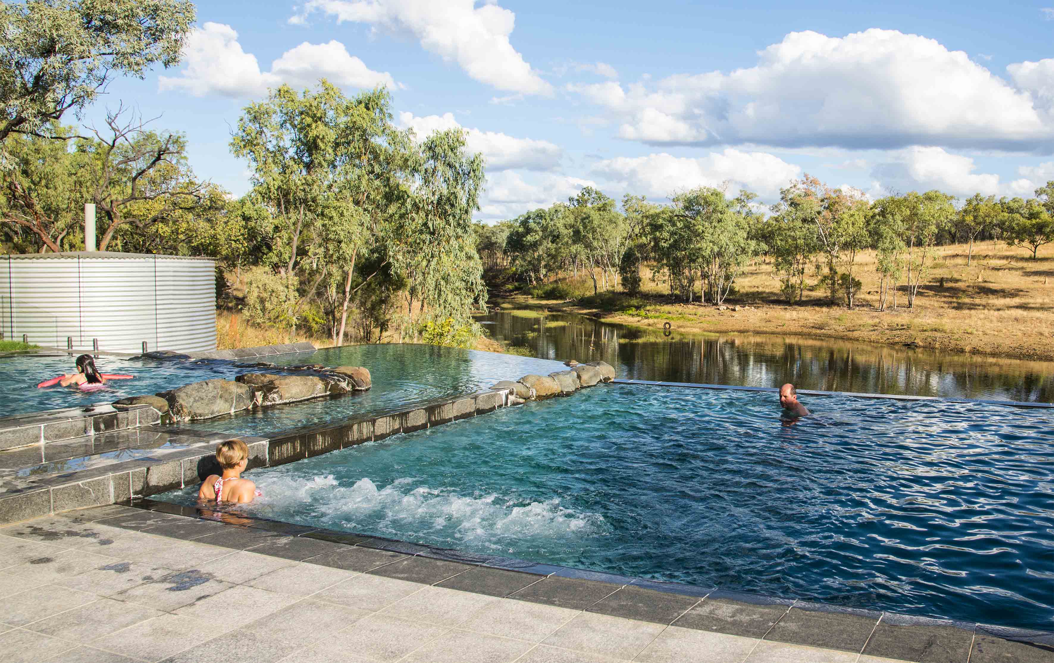 The rest as they say is history, and the whole experience was very pleasant – think real outback, dusty roads, hot temperatures … and contrast this with an infinity pool overlooking tall gum trees, a great bar and really skilled staff and guides. As well the caravan park was very quiet with a lot of bird life and trees.
