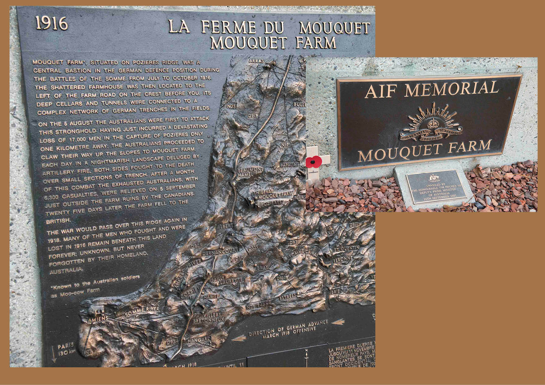As well we were shown the field where “The Red Baron” came to grief. Von Richthofen was shot down over an area where Australian troops were entrenched and they may have actually fired the shot that killed him. It is a little controversial and probably will never be settled.