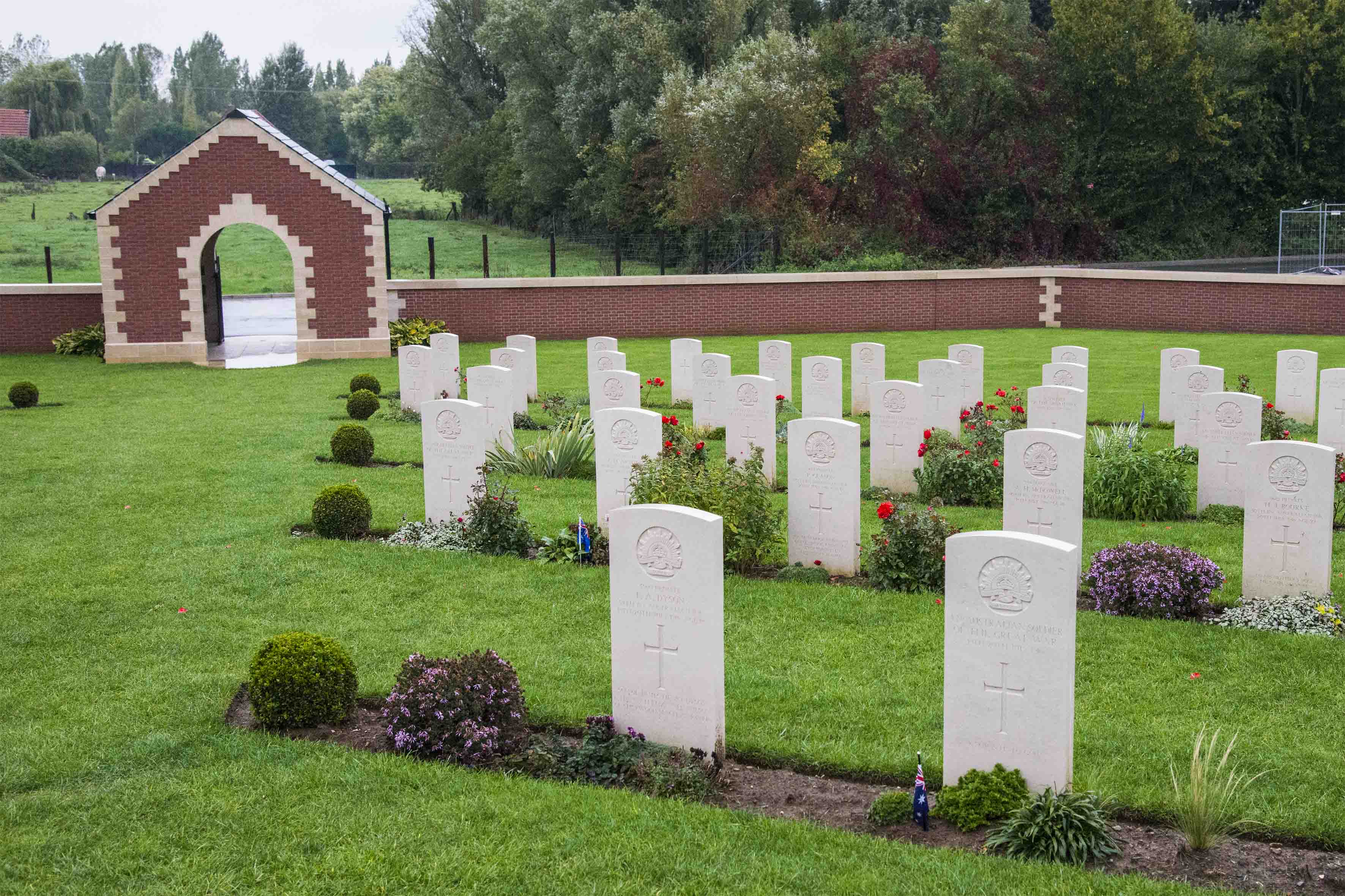 Jacques, our amazing guide, continued to divert to interesting places during our second tour, so we were able to see the new Memorial Cemetery in Fromelles where a mass grave was discovered recently. The location was finally found after a lot of sleuthing by a couple of individuals including the use of some old aerial photographs in their quest. A great job and DNA has been used to identify some of the diggers there.