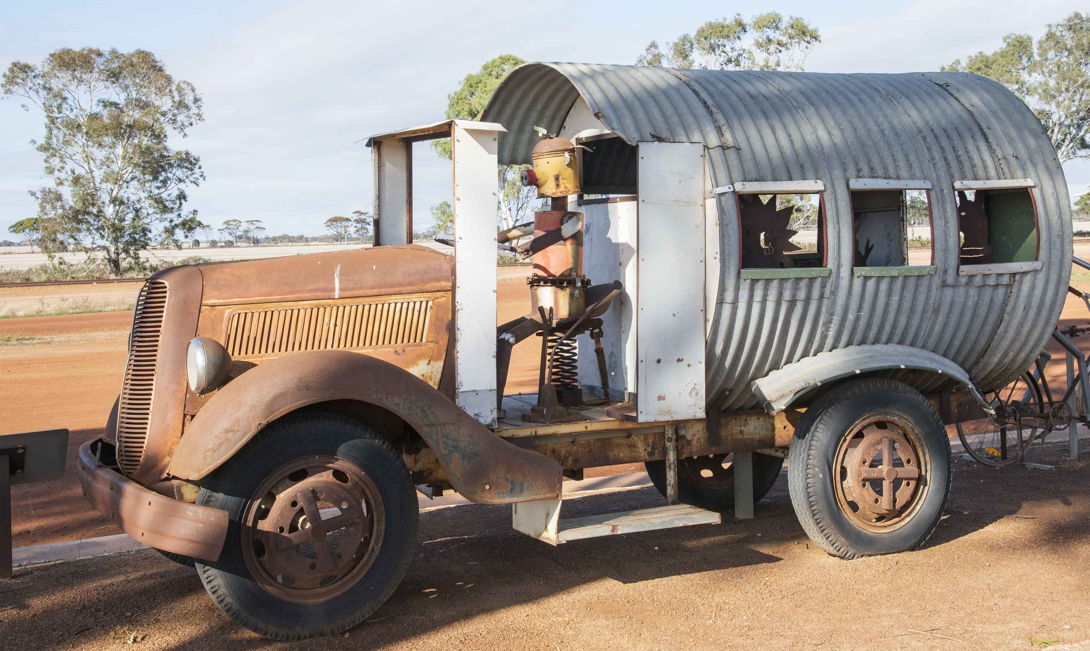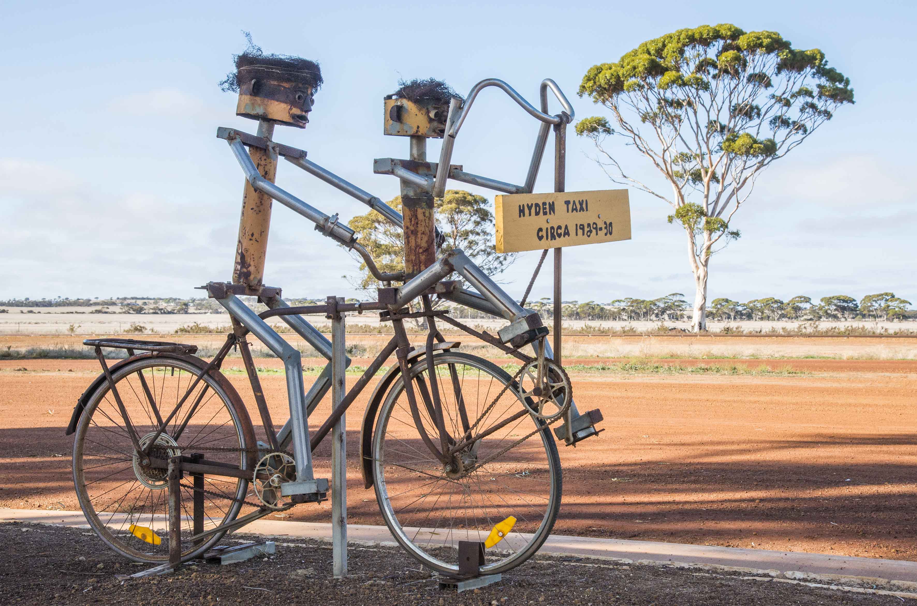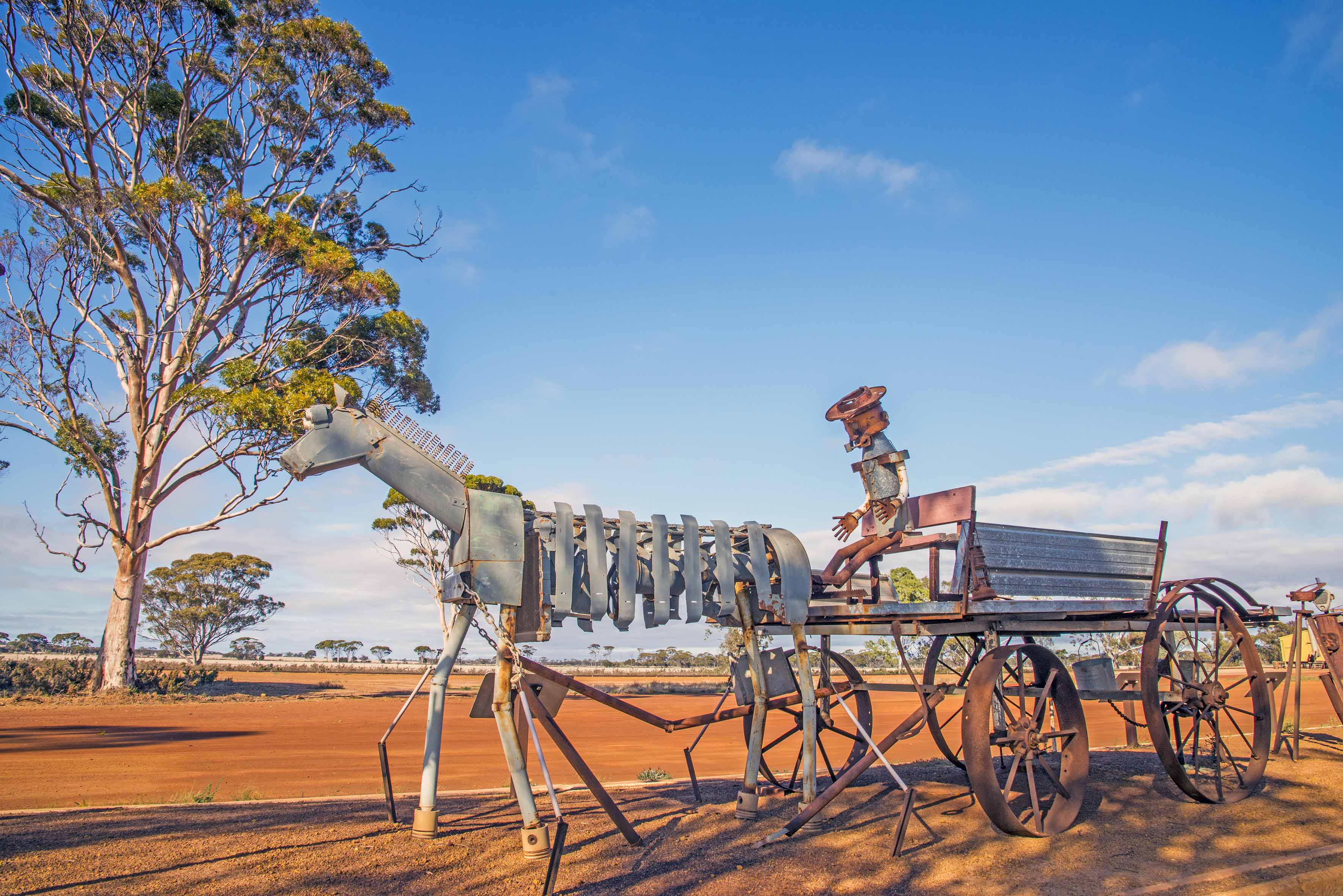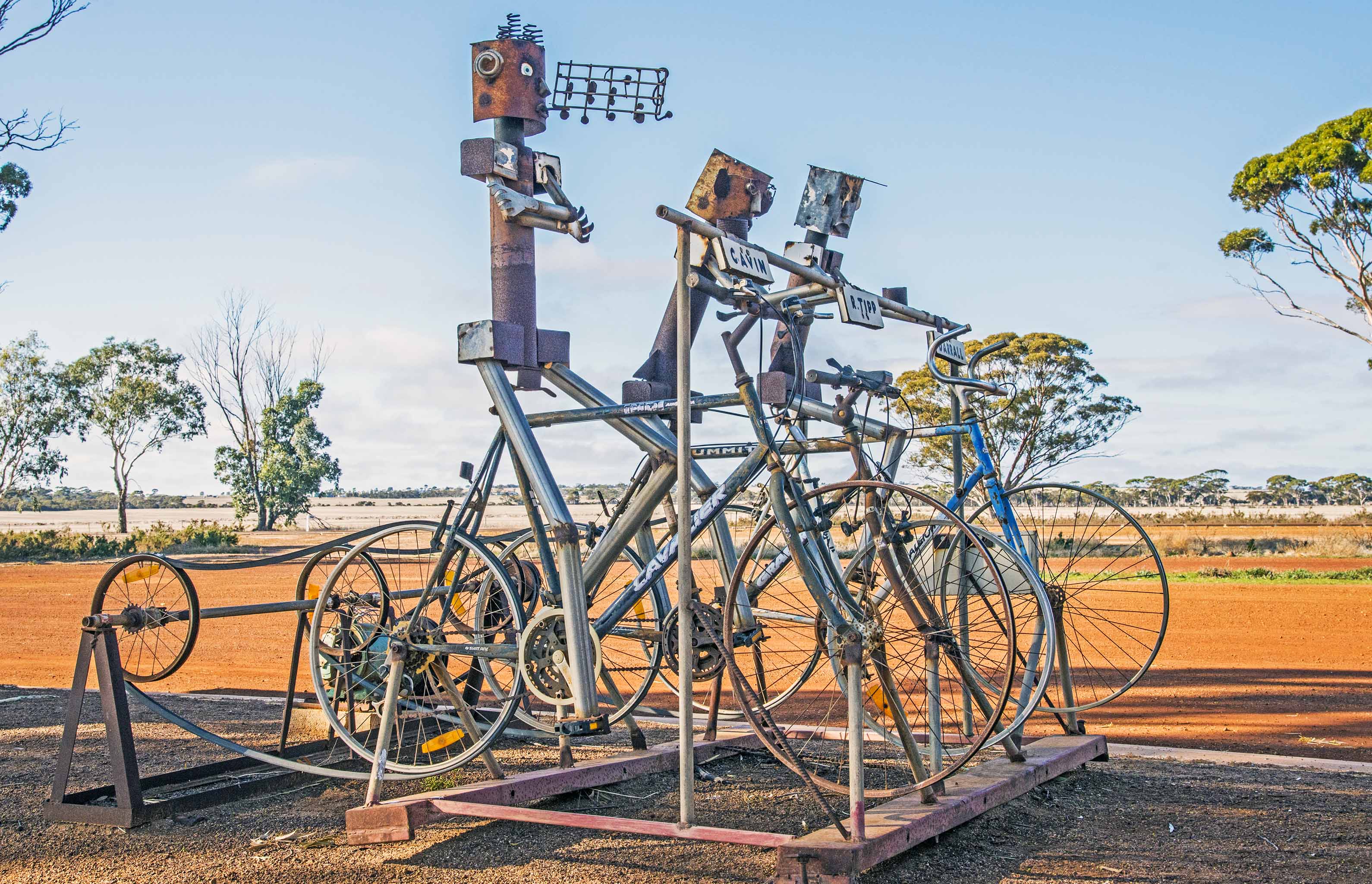 • the Living Art Sculptures were inspirational. This is a clever ‘walk through history’ created by local people, using old machinery and metal junk to tell the story of Hyden.