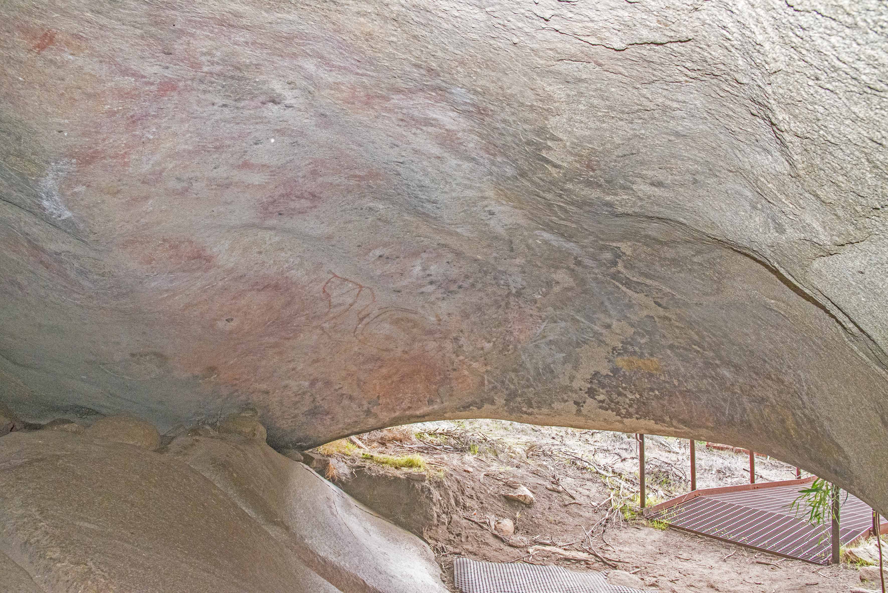 We drove out to Mulka’s Cave and The Humps…. the name Mulka’s Cave comes from an Aboriginal Legend believe to be associated with the cave. Mulka was the illegal son of a woman who fell in love with a man with whom marriage was forbidden. The legend is complicated and violent, but is there to try to stop ‘wrong-way marriages’ and also to prevent children wandering away from the group. Note the rock art on the walls below: